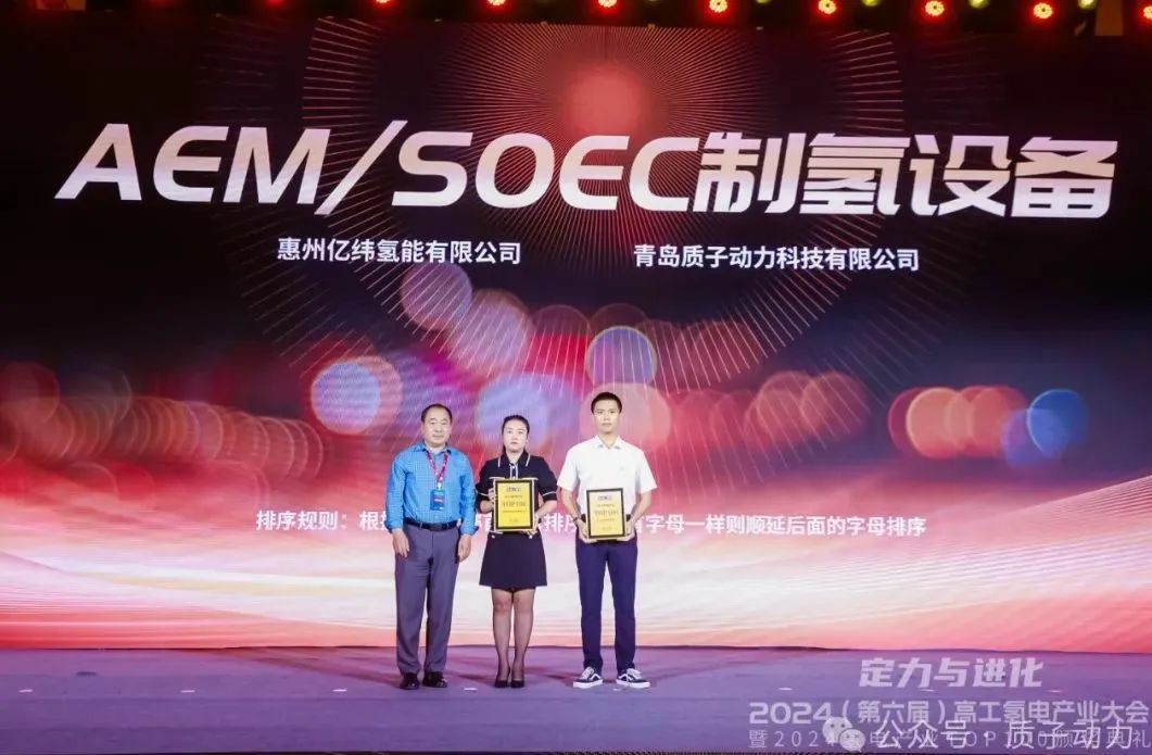 質子動力榮獲高工氫電2024氫電產業TOP100 SOEC代表企業榮譽