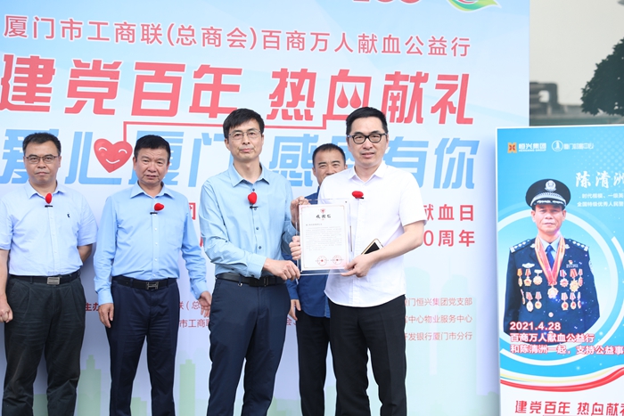 廈門市中心血站還向廈門恒興集團頒發了感謝信,就廈門恒興集團多年來積極組織無償獻血活動表示感謝,以及柯希平董事長長期以來對廈門無償獻血公益事業的重視和支持表示感謝。