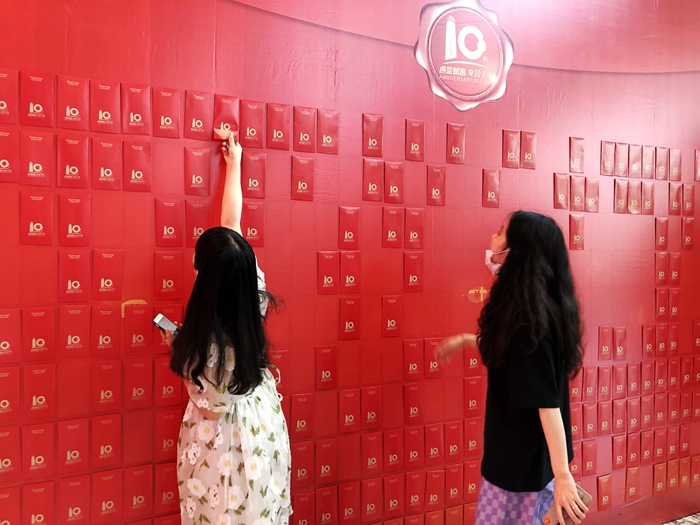 炎炎夏日最能讓大家心動的,大概非紅包莫屬了。中午12點,一樓大堂紅包墻正式開放,不到半小時,一整面400個紅包就被熱情的白領們搶光,現場上演“手撕紅包”大戲,熱鬧非凡。