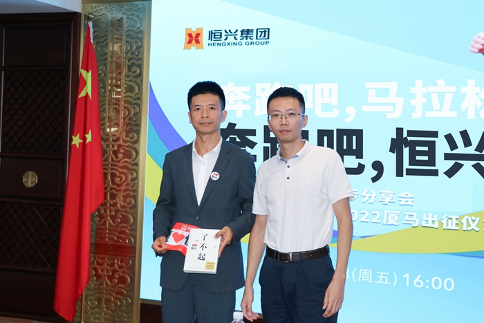 當天,集團公司總裁辦主任吳勇慧在發言中祝賀葉仁平再次中簽,期待他將恒興人追逐不凡的身姿,再次帶進廈馬賽場,并預祝他突破個人歷史成績記錄。現場,吳主任為參賽職工發放了賽事報名費補貼,并贈送勵志書籍、馮唐的新書《了不起》。?